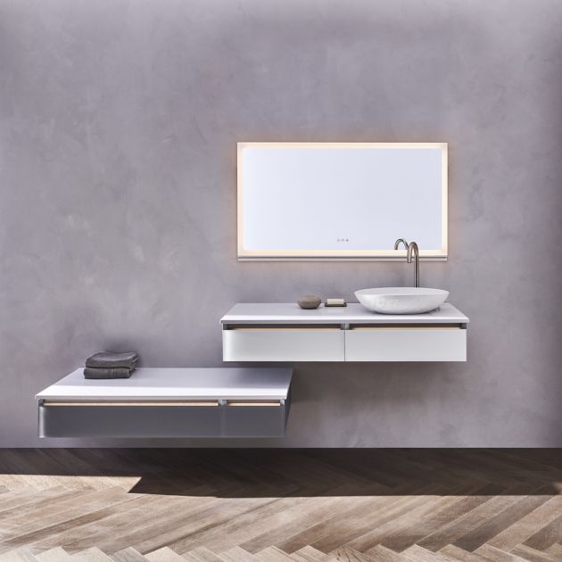 • The handle enables effortless two-finger lifting of the door without smudging the mirror. It also houses the night light option, creating a clean clutter-free design.