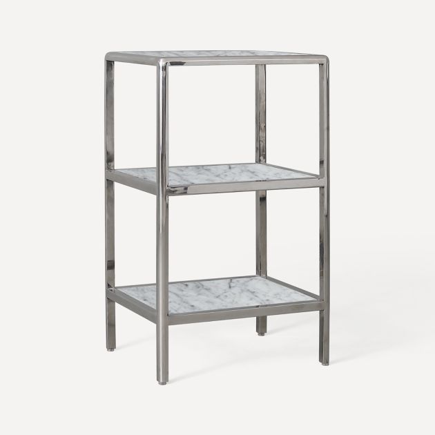 The Cornell collection brings to mind the confident and minimal interiors so popular in New York City’s famed Soho district. The proportions and lines of the Cornell Linen Cabinet connect American design across the 20th century, with an aesthetic that is modern and clean. A statement in simplicity, the marble top rests upon a hand-welded base of Polished Stainless Steel, the lower legs joined by stretchers that enclose a matching marble shelf.