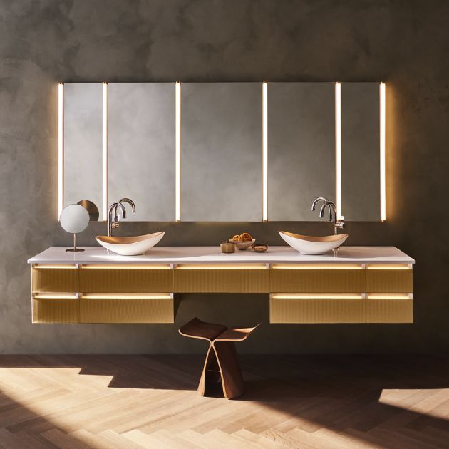 - A dedicated razor/phone holder and 3 tier tray come standard and house small items such as eyeglasses, contact lens cases and cosmetics.
