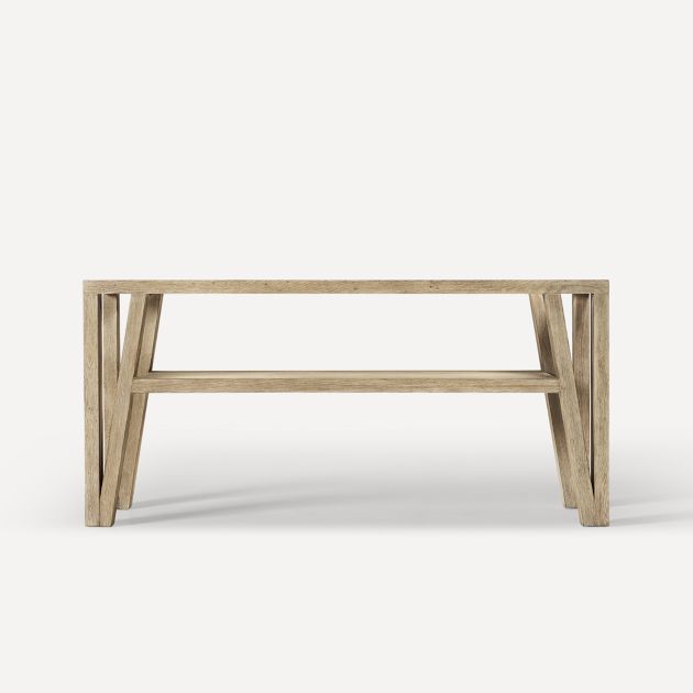 - Taking a cue from the exposed beams in a modern farmhouse, architectural details and an open console design with integrated basin sink bring earthy, artisanal style into your space.
